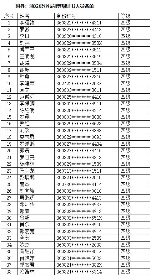 附件:頒發(fā)職業(yè)技能登記證書人員名單
