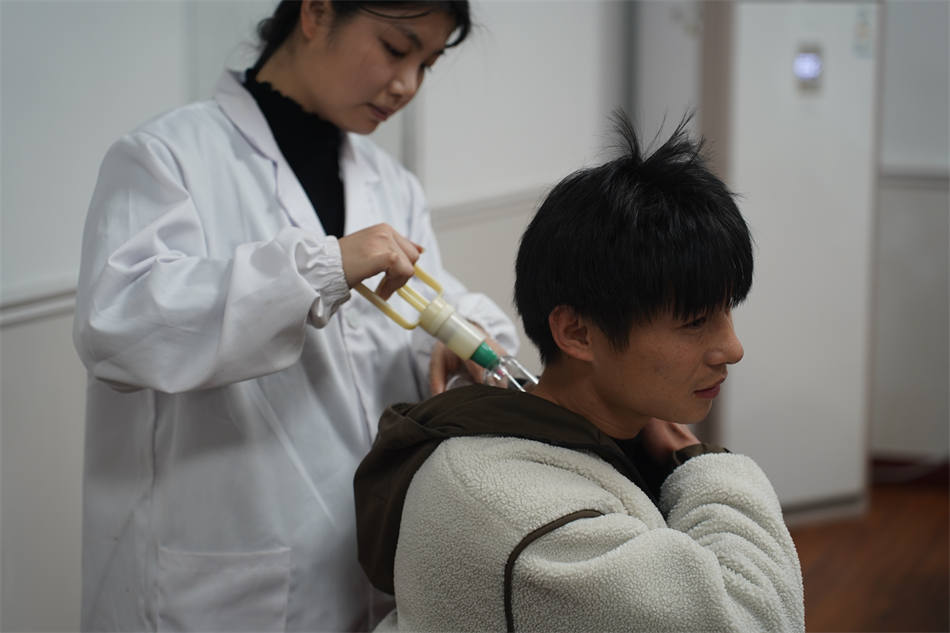 長(zhǎng)期伏案工作容易導(dǎo)致頸椎病、關(guān)節(jié)炎、肩周炎等慢性疾病,這也是許多教職工面臨的健康困擾。針對(duì)這一問題,志愿者為教職工們提供了中醫(yī)理療、針灸、推拿、拔罐、艾灸、刮痧等多種治療服務(wù)。