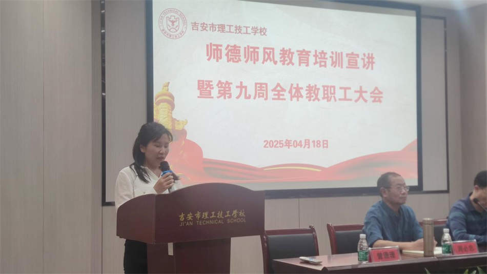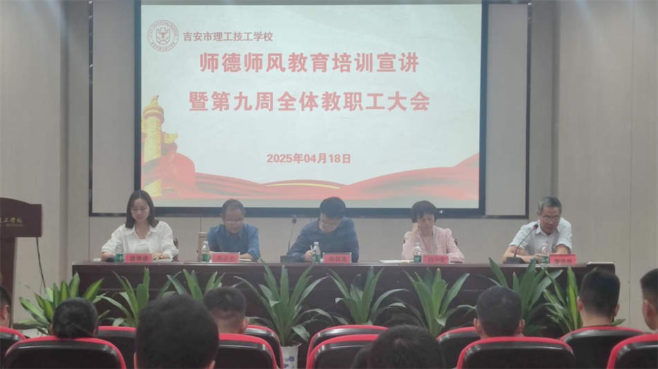 為深入貫徹落實習近平總書記關(guān)于教育的重要論述,全面提升教師隊伍思想政治素質(zhì)和職業(yè)道德水平,2025年4月18日,吉安市理工技工學校召開全體教職工師德師風建設(shè)推進會,會議以“立德樹人鑄師魂,匠心筑夢強師能”為主題。