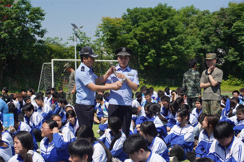 幾位警官輪流接過話筒,結(jié)合轄區(qū)真實(shí)案例,用通俗易懂的語言剖析詐騙套路。他們時(shí)而模擬詐騙分子的話術(shù),時(shí)而拆解“網(wǎng)絡(luò)刷單”“游戲賬號交易詐騙”等青少年高發(fā)騙局的作案手法,還不時(shí)穿插互動(dòng)問答。“收到‘客服’退款電話該怎么辦?”“三步走:不輕信、不轉(zhuǎn)賬、立即報(bào)警!”警官的總結(jié)引得陣陣掌聲。