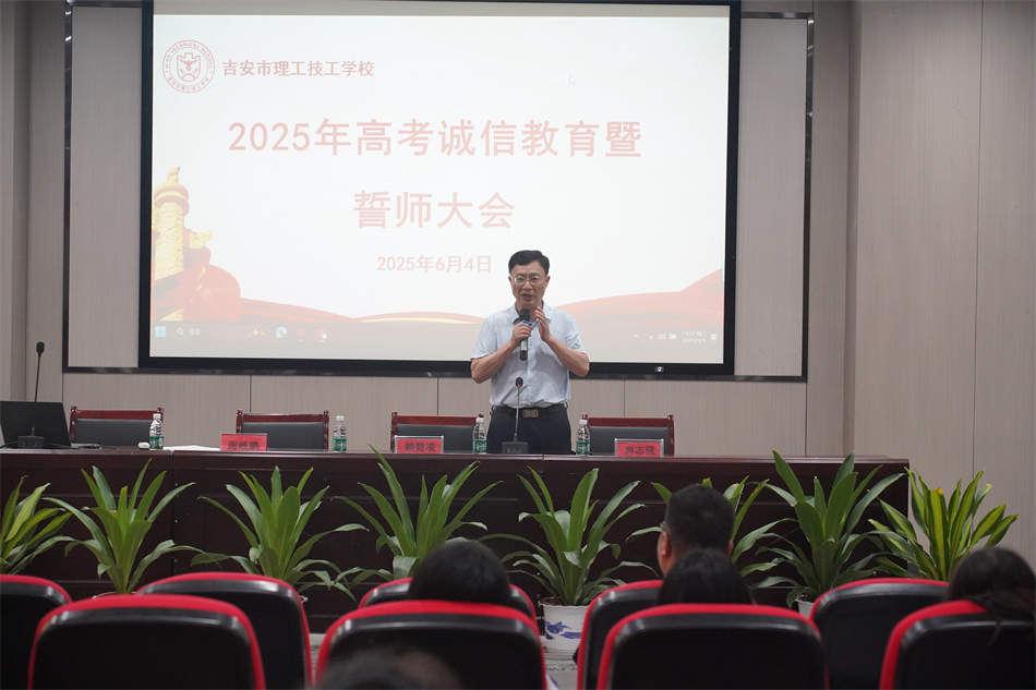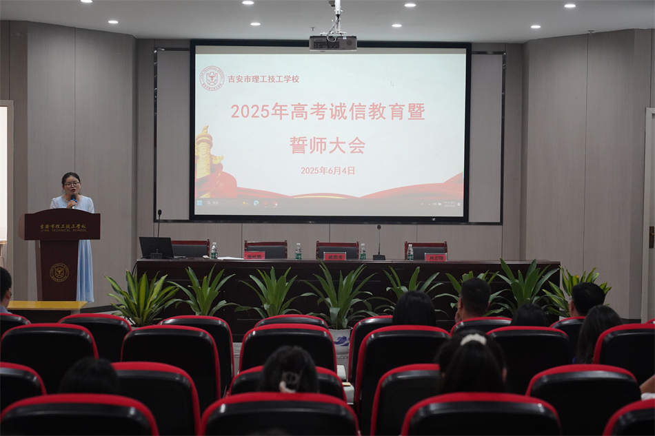 隨著2025年高考的日益臨近,6月4日下午,吉安市理工技工學(xué)校的綜合樓報(bào)告廳內(nèi)隆重舉行了2025年高考誠信教育暨誓師大會(huì)。執(zhí)行校長(zhǎng)賴碧凌、教務(wù)處副主任周岐鵬、學(xué)工處副主任肖志強(qiáng)、班主任余盤盤及22級(jí)師生齊聚一堂,共同為即將踏上高考考場(chǎng)的理工學(xué)子們加油鼓勁,奏響青春奮進(jìn)的鏗鏘戰(zhàn)歌。