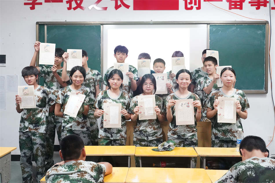 訓(xùn)練場上,教官正逐個糾正學(xué)員的敬禮手勢:“手腕再平一點,目光看向前方!”課間休息時,他卻微笑著遞上礦泉水:“今天比昨天進(jìn)步多了,繼續(xù)保持!”教室里,書法課的老師正俯身查看學(xué)生臨寫的硬筆楷書作業(yè),提出建議:“注意橫畫起筆要像刀刻般利落,收尾時筆尖順勢輕提。”這種嚴(yán)慈相濟(jì)的指導(dǎo),讓學(xué)員們在適應(yīng)節(jié)奏的同時,也感受到成長的溫度。