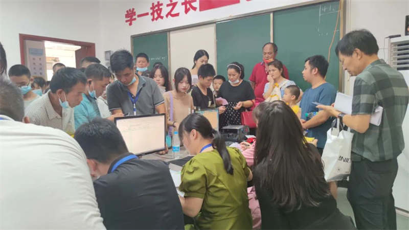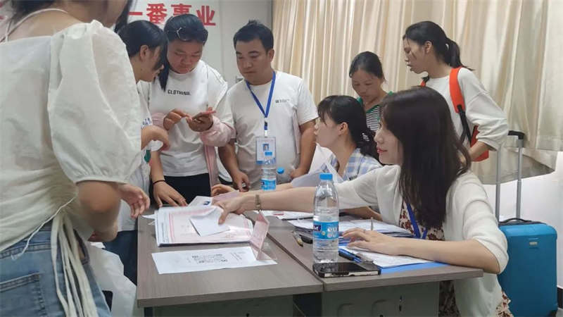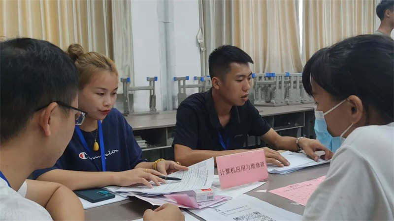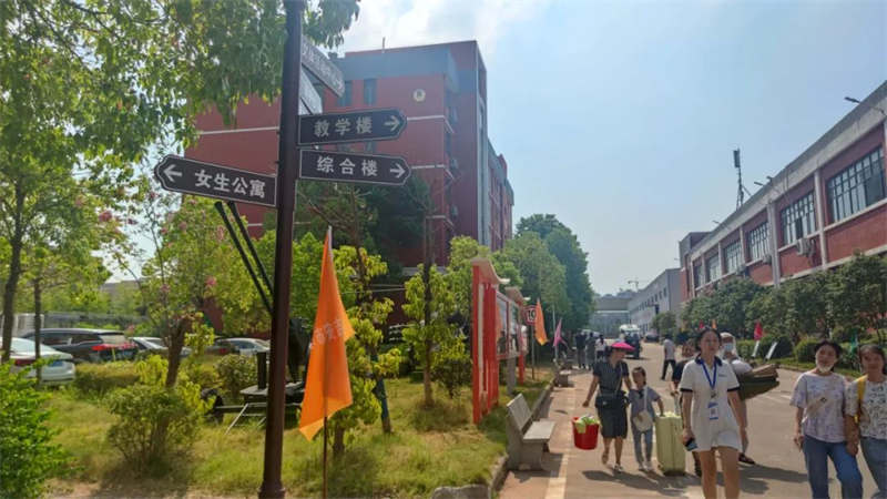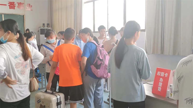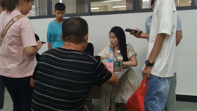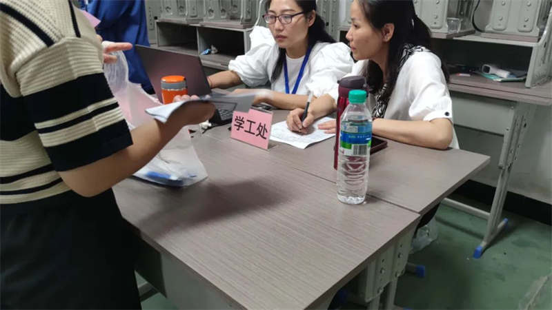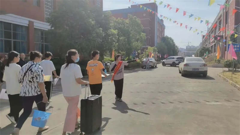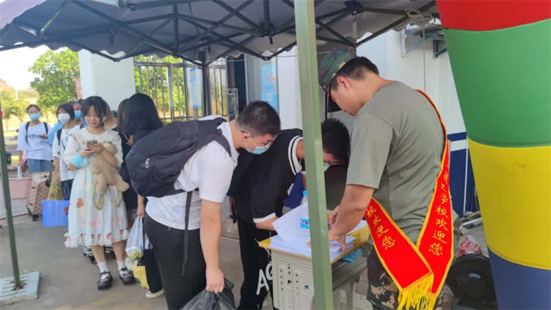 校園里,學(xué)生、老師、志愿者忙碌在各個(gè)環(huán)節(jié),協(xié)助新同學(xué)搬運(yùn)行李、辦理手續(xù)等,幫助新生迅速熟悉學(xué)校。