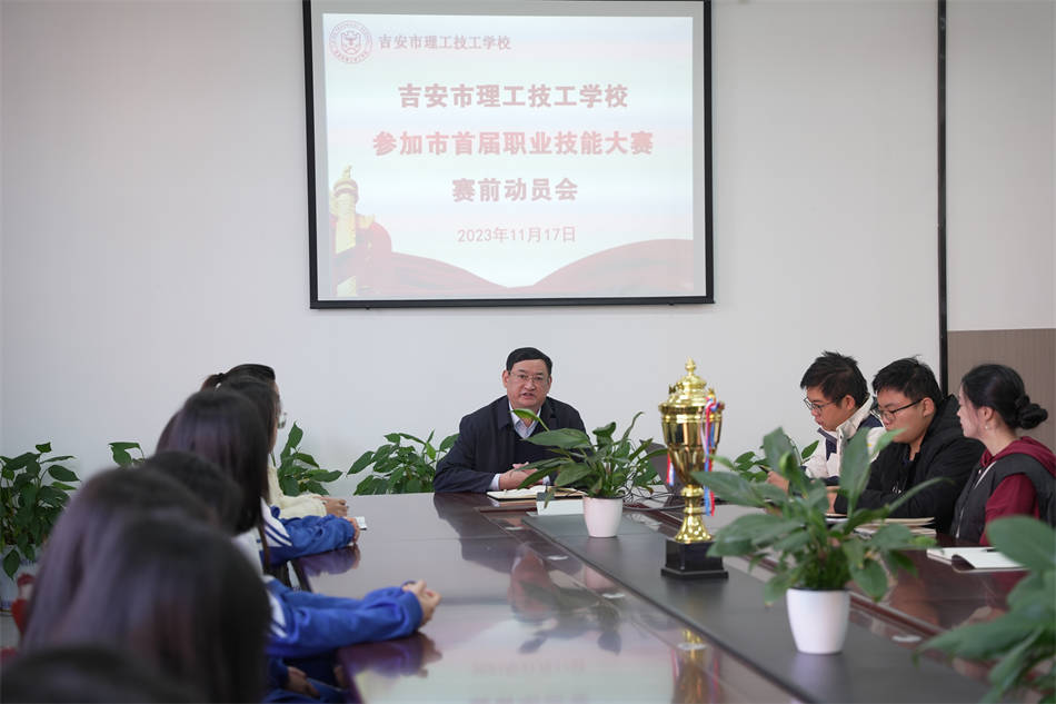 2023年吉安市第一屆職業(yè)技能大賽即將拉開序幕,為了迎接比賽的到來,做好賽前準備工作,11月17日上午,吉安市理工技工學校在綜合樓會議室召開技能大賽賽前動員會,以表斗志,以壯士氣。執(zhí)行校長汪榮華、參賽項目領隊、指導老師及選手、教務處相關負責人參加了本次會議。