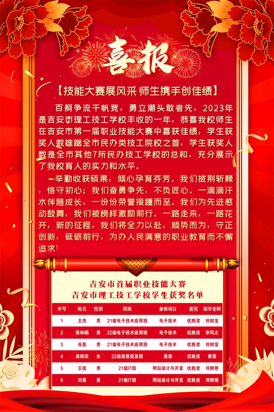 恭喜我校師生在吉安市第一屆職業(yè)技能大賽中喜獲佳績