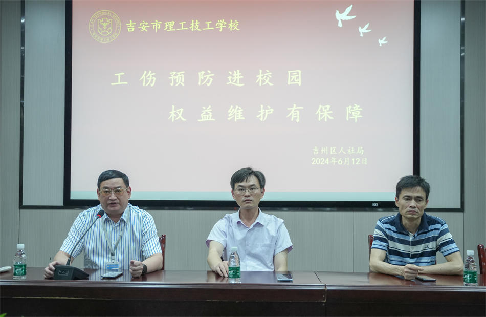 工傷預(yù)防宣傳進(jìn)校園,旨在將傳統(tǒng)主要面向企業(yè)職工的工傷預(yù)防宣傳前置到校園中,把工傷預(yù)防理念、知識和技能送到學(xué)生身邊,為將來走上實習(xí)和工作崗位的學(xué)生群體筑牢職業(yè)傷害預(yù)防的第一道防線。2024年6月12日,由吉州區(qū)人力資源和社會保障局舉辦的“工傷預(yù)防進(jìn)校園,權(quán)益維護(hù)有保障” 專題講座走進(jìn)吉安市理工技工學(xué)校,為同學(xué)們帶來了一場內(nèi)容豐富的知識分享會。學(xué)校執(zhí)行校長汪榮華、學(xué)工處及師生代表參加了本次講座。
