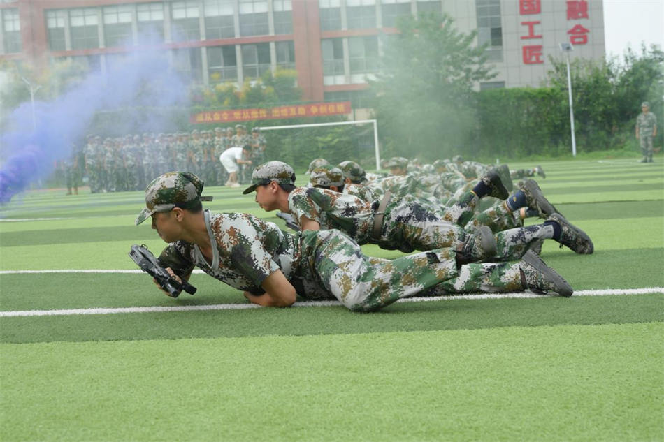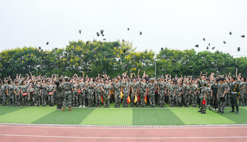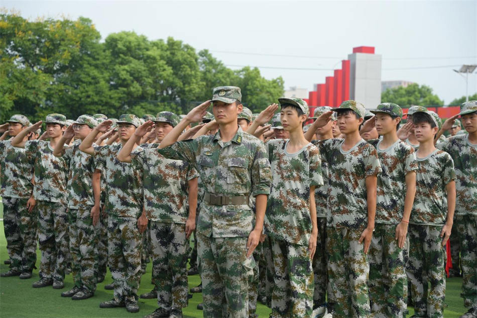 結營儀式,仿佛是一場盛大的告別與啟程。綠茵場上,沒有了往日的喧囂與緊張,取而代之的是一種難以言喻的寧靜與美好。一排排身著迷彩服的新生們,宛如初升朝陽下的勇士,精神抖擻,站姿筆挺,眼神中閃爍著軍訓錘煉出的堅韌與自信之光,那是青春最耀眼的徽章,熠熠生輝。