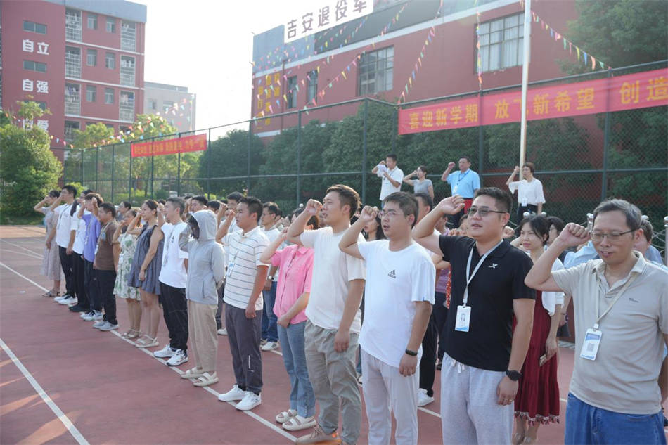 隨后,全體教師與學(xué)生們分別進(jìn)行了莊嚴(yán)地宣誓。教師們的誓言如同山澗清泉般堅(jiān)定有力,透露出對(duì)教育事業(yè)的無限熱愛與對(duì)學(xué)生的深情厚誼;學(xué)生們的誓言則如同林間鳥鳴般清脆悅耳,透露出對(duì)未來的無限憧憬與對(duì)成長(zhǎng)的渴望。他們的誓言在校園中回蕩,成為新學(xué)期最響亮的號(hào)角,聲聲入耳,激勵(lì)著每一個(gè)人勇往直前、追求卓越。