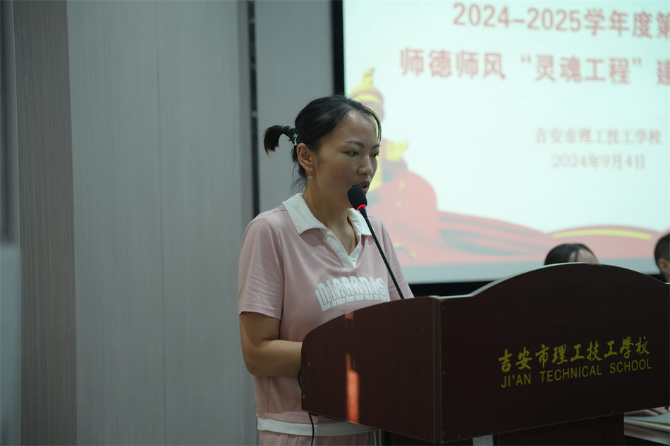 隨后,黨支部對本學(xué)期師德師風(fēng)“靈魂工程”建設(shè)實(shí)施方案進(jìn)行了解讀;賴董事長帶領(lǐng)教職員工進(jìn)行了《人民教師誓詞》宣誓儀式,并與教師代表簽定并了《吉安市理工技工學(xué)校師德師風(fēng)承諾書》;李亭燕、朱書敏作為優(yōu)秀教師代表進(jìn)行了表態(tài)發(fā)言。