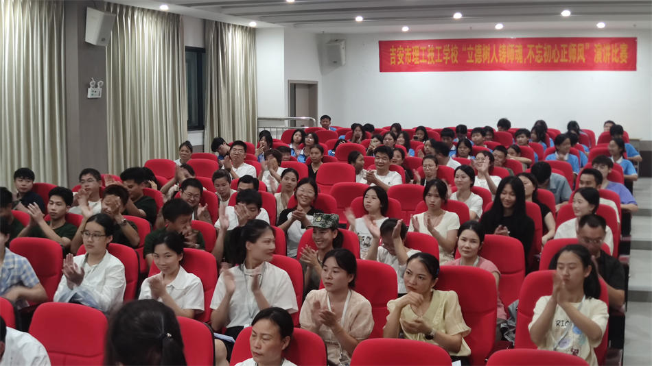 “其身正,不令而行;其身不正,雖令不從”,為大力弘揚(yáng)教育家精神,在第40個(gè)教師節(jié)來(lái)臨之際,吉安市理工技工學(xué)校成功舉辦了一場(chǎng)隆重而意義深遠(yuǎn)的師德師風(fēng)演講比賽。本次大賽以“立德樹人鑄師魂,不忘初心正師風(fēng)”為主題,旨在弘揚(yáng)高尚師德,強(qiáng)化教師職業(yè)責(zé)任感與使命感,激勵(lì)全體教職員工不忘初心,牢記教書育人的神圣職責(zé),共同營(yíng)造風(fēng)清氣正的教育環(huán)境。