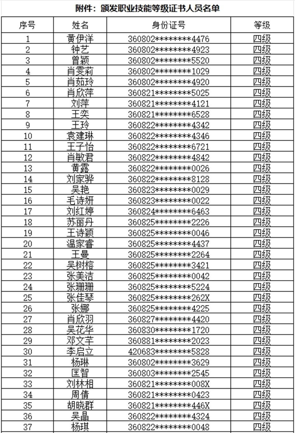 附件:頒發(fā)職業(yè)技能登記證書人員名單